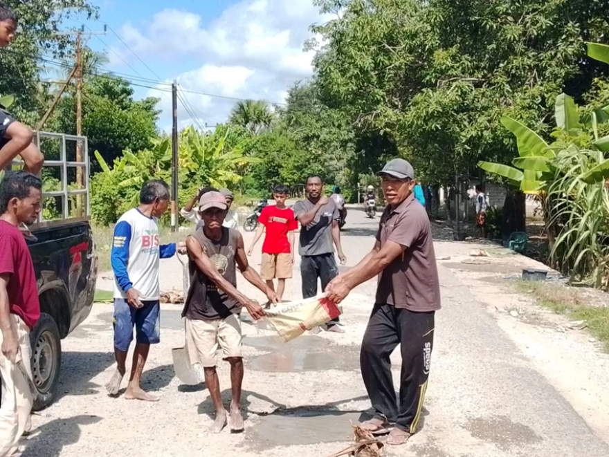 Dukung Program Bupati Malaka, Pemdes Rabasa Biris dan Warga Gotong Royong Perbaiki Jalan Rusak di Haliwai